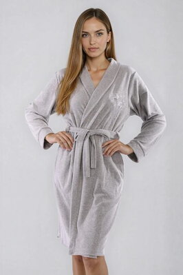 Šedý dámský župan z bavlněného froté.