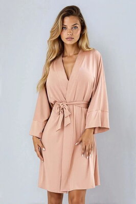 Lehký dámský župan s délkou nad kolena doplněný stylovým zdobením.
