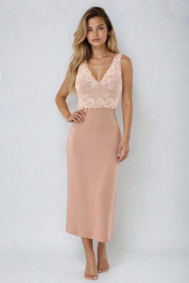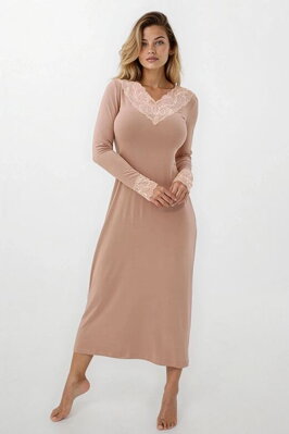 Dlouhá luxusní košilka Ceylon světle hnědá