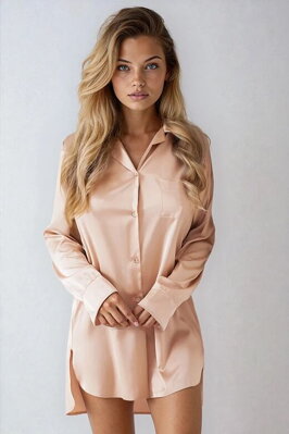 Propínací noční košile ze saténu vám bude slušet. Má béžovou barvu...