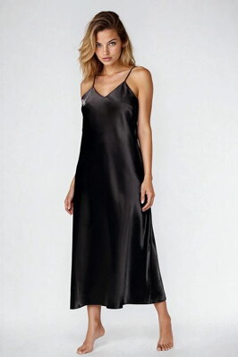 Dlouhá saténová noční košilka černá.
