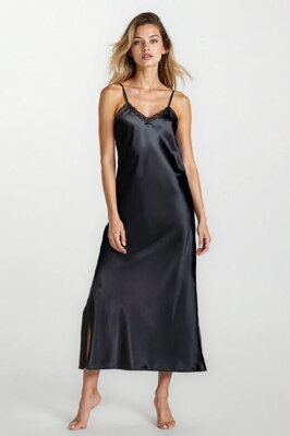 Dlouhá saténová košilka Argentina černá