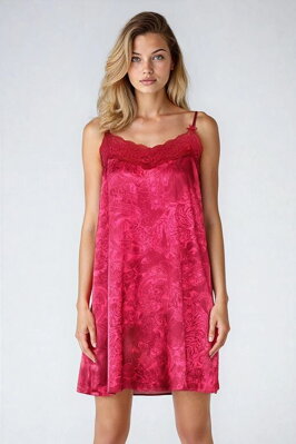 Sytě růžová dámská noční košilka z jemného saténu.