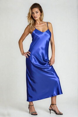 Elegantní dlouhá saténová košilka v modré barvě.