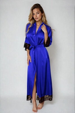 Okouzlující dámský župan Synthia je vyrobený z modrého saténu a má...
