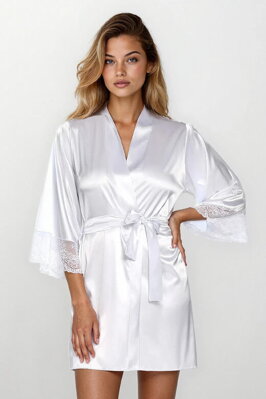 Saténový župan Trixa bílý s krajkou