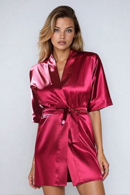 Saténový dámský župan malinově růžové barvy, v délce cca 90 cm.