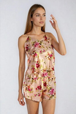 Dámský saténový komplet s něžným květinovým vzorem.