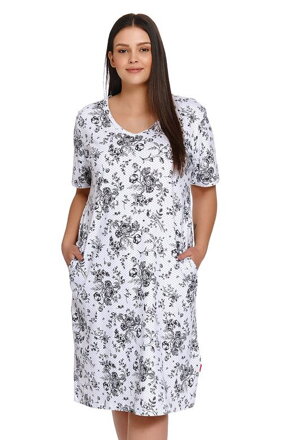 Decentní bílá košilka je vyrobená z kvalitní bavlny, má elegantní květinový vzor a je vhodná i pro plnoštíhlé ženy.