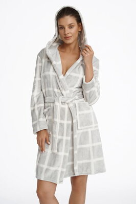 Dámský župan se vzorem kostky má stylovou bílo-šedou barvu a hebký materiál.