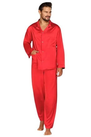 Pánské saténové pyžamo má velice příjemný materiál, krásnou červenou barvu a je vhodné ke sladění s dámským županem Amina.