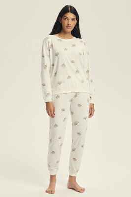 Dámské pyžamo Cervia dlouhé ecru s ginkgo