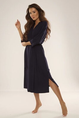 Viskózový dámský župan Visa tmavě modrý dlouhý