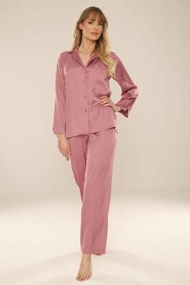 Dlouhé saténové pyžamo Cordelia starorůžové