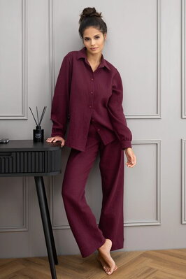 Dámské mušelínové pyžamo Colette vínové dlouhé