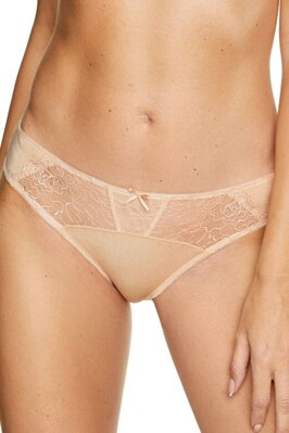 Luxusní krajkové kalhotky mají oblíbený klasický střih a krásnou béžovou barvu.