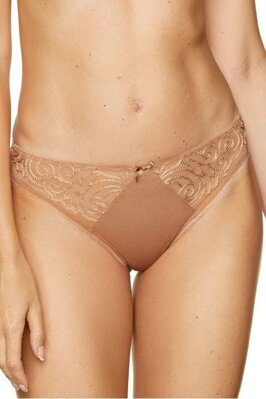 Svůdná dámská tanga Onyx mají originální béžovo-zlatou barvu a krásnou výšivku na bocích.