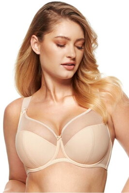 Podprsenka má polovyztužené košíčky, je s kosticemi a má zpevňující střih vhodný i pro větší poprsí.