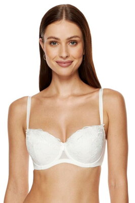 Podprsenka Cherie má vyztužené košíčky, krásnou výšivku a krémově bílou barvu.