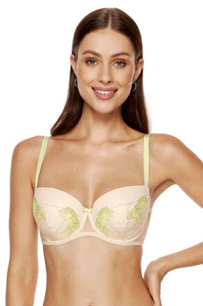 Dámská podprsenka Soleil je vyrobená z kvalitního materiálu, má originální rostlinné zdobení a je béžová, se zelenými detaily.