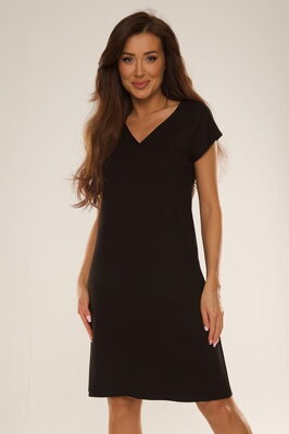 Černá dámská noční košilka Freya z viskózy s krátkými rukávy a véčkovým výstřihem bude vaše oblíbená.