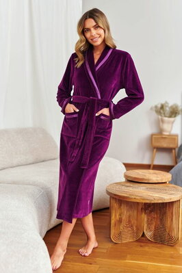 Dámský velurový župan má krásnou barvu burgundy a díky zavinovacímu střihu je velice pohodlný a slušivý.