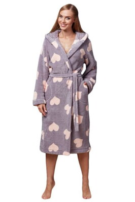 Dlouhý dámský župan Kola šedý se srdíčky