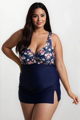 Pohodlné černohnědé tankiny s krásným květinovým vzorem na předním...