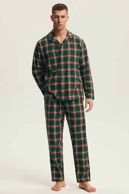 Pánské flanelové pyžamo Nut zelené káro