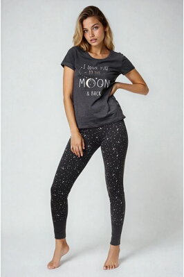 Bavlněné dámské pyžamo s trendy vzorem a nápisem Reach for the stars.